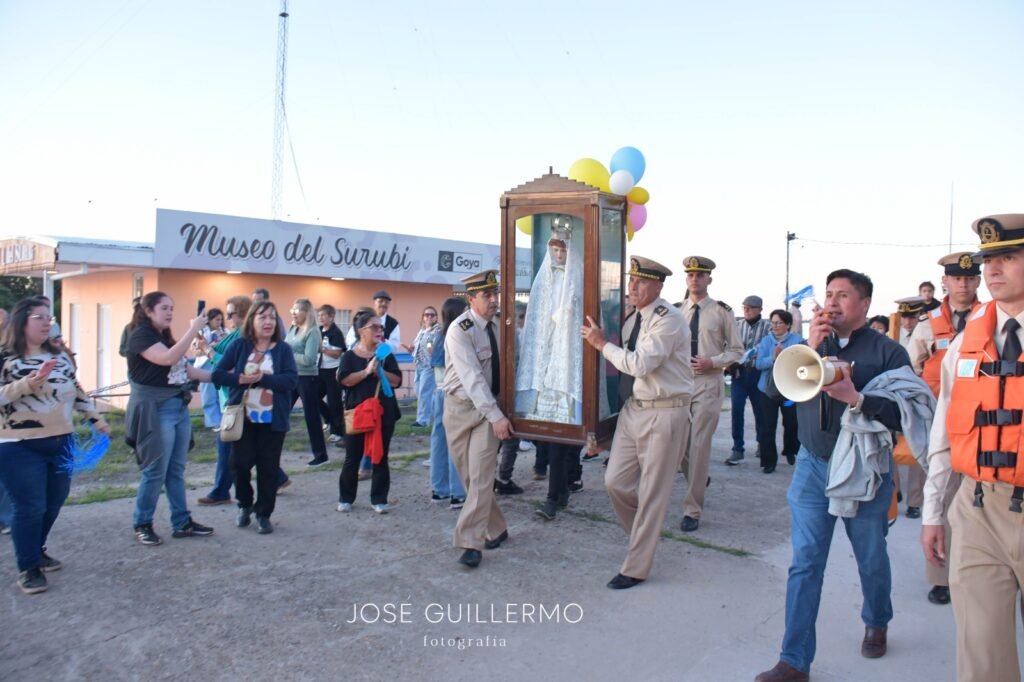 Cientos de fieles participaron este domingo de la tradicional procesión náutica de la Virgen del Rosario por el Riacho Goya,